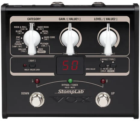 Das robuste Metallgehäuse der StompLab-Bodenleisten mag zwar kompakt aussehen, aber dahinter verbirgt sich massive Power. Zum Glück sind die Sounds in leicht verständliche Kategorien unterteilt wie „Rock“, „Blues“ und „Ballad“, so dass man schnell den gewünschten Sound-Stil findet.