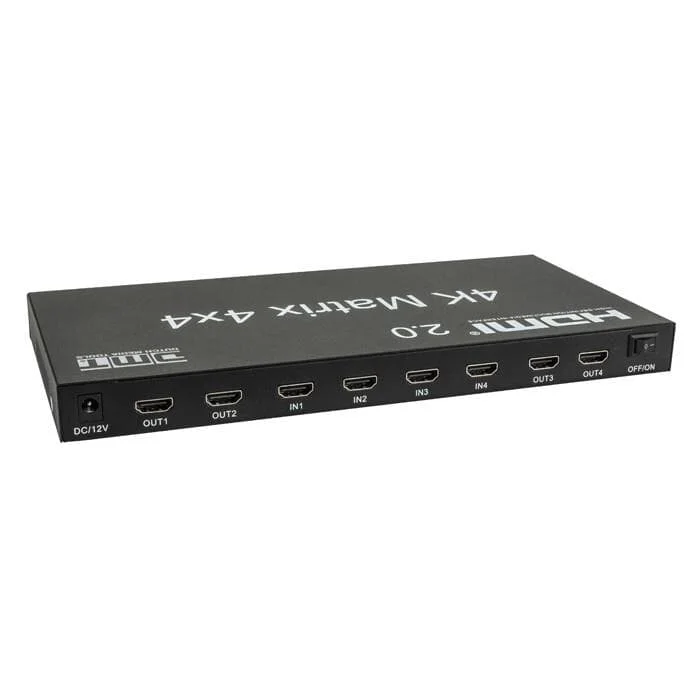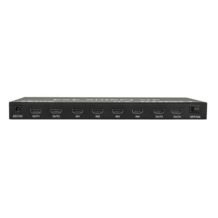 Die DMT VT101 – HDMI Matrix 4×4 ist eine Kombination aus einem Switch und einem Splitter, die den Anschluss von mehreren HDMI-Geräten an mehrere Displays / Fernseher etc. ermöglicht. Er kann manuell oder über eine mitgelieferte Fernbedienung gesteuert werden, was die Bedienung sehr einfach macht. Ein HDMI-Switch oder Splitter könnte niemals die gleiche Funktionalität oder Flexibilität bieten. Der DMT VT101 unterstützt Auflösungen bis zu 3840 x 2160 p @ 60 Hz. Anzeigen an der Vorderseite des Geräts zeigen den aktuellen Routing-Status für einen klaren Überblick über Ihre Ausgangssignale an.