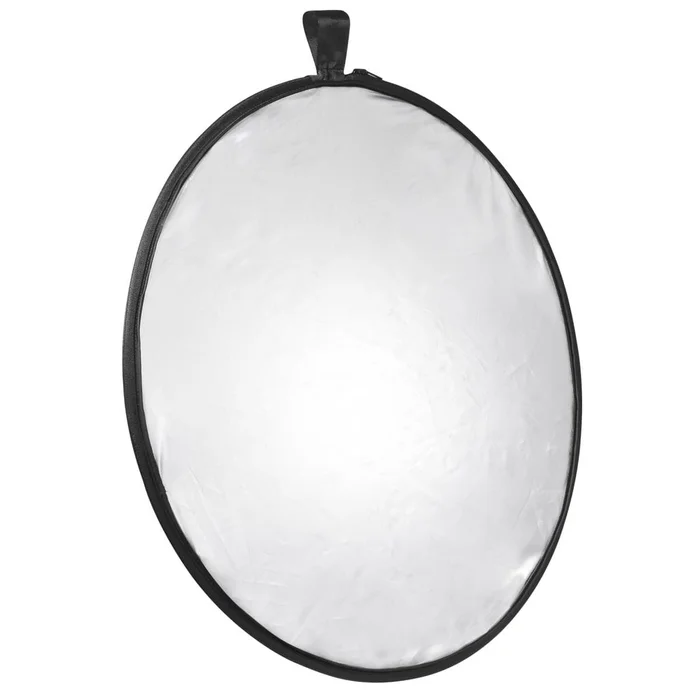 Dieses 5in1 Reflektoren Set mit 107cm Durchmesser ist eine ausgereifte Lösung zur Ausleuchtung Ihrer Portraitaufnahmen. Es ist flexibel bei der In- und Outdoorfotografie einsetzbar. Im Studio ist es der perfekte Assistent um störende Schatten aufzuhellen oder Lichteffekte zu erzielen. Das umfangreiche Set besteht aus einem stabilen Faltreflektor, der mit einer Diffusorfolie bespannt ist und drei weiteren Reflexflächen: weiß-neutral, silber-kalt, gold-warm und einer schwarzen Fläche zum Abschatten. Die gewünschte Oberfläche wird als doppelseitiger Überzug mit einem Reißverschluss über den Reflektor gespannt. Der Reflektor ist auch zur Verwendung am Reflektorhalter geeignet. Geliefert wird der Faltreflektor zusammengelegt in einem Tragebeutel (ca. Ø40cm).