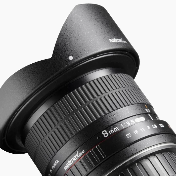 Die Brennweite von nur 8mm ermöglicht einem Mindestabstand von 30cm. Es lassen sich aufregende Weitwinkelbilder, bereits kurz vor der Frontlinse beginnend in brillanter Schärfe festhalten. Die hohe Lichtstärke von 1:3,5 ermöglicht auch bei weniger günstigen Lichtverhältnissen hervorragende Aufnahmen. Das Objektiv ist für die DSLR Kamera mit APS-C Sensor optimiert. Eine Gegenlichtblende verhindert seitlich einfallendes Streulicht und Linsenreflexionen. Die Glaslinsen des Objektivs sind vergütet und bringen einen hervorragenden Kontrast sowie ein sehr gutes Schärfeverhalten. Die besonders hochwertige Optik des Objektivs sorgt für optimale Bildergebnisse mit ausgewogener Farbwiedergabe.