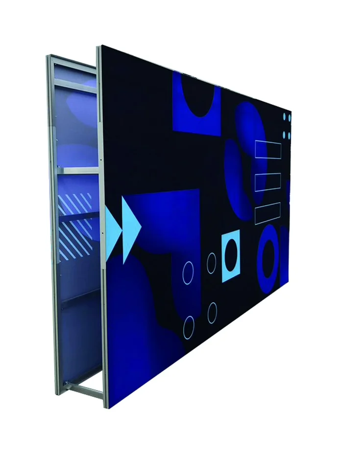 Der Wentex SET Rahmen besteht aus leichtem Aluminium-Textilrahmensystem und ermöglicht den schnellen und einfachen Aufbau von Messe- und Projektionswänden. Das modulare System ist äußerst flexibel und kann eine Höhe von bis zu 12’ erreichen. Sie können den Rahmen stufenlos verstellen. Darüber hinaus können Sie beide Seiten als Projektionsfläche verwenden oder einen Zwischenraum schaffen, in dem Sie nahtlos LED-Bildschirme anbringen können. Das ist die ideale Spannrahmenlösung für Spann-/Textilgewebe (SEG-Grafiken) auf Konferenzen, Messen, Ausstellungen, Seminaren und in Fernsehstudios.