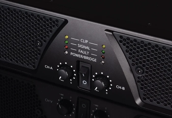 Dank fortschrittlicher Kühlsysteme und Schutzschaltungen gegen Kurzschlüsse und Überhitzung ist der DR4800 für hohe Arbeitslasten ausgelegt. Die umfassenden Schutzschaltungen schützen den Verstärker und die angeschlossenen Geräte vor Schäden. Die LEDs auf der Vorderseite geben klare Rückmeldungen zum Betriebszustand.