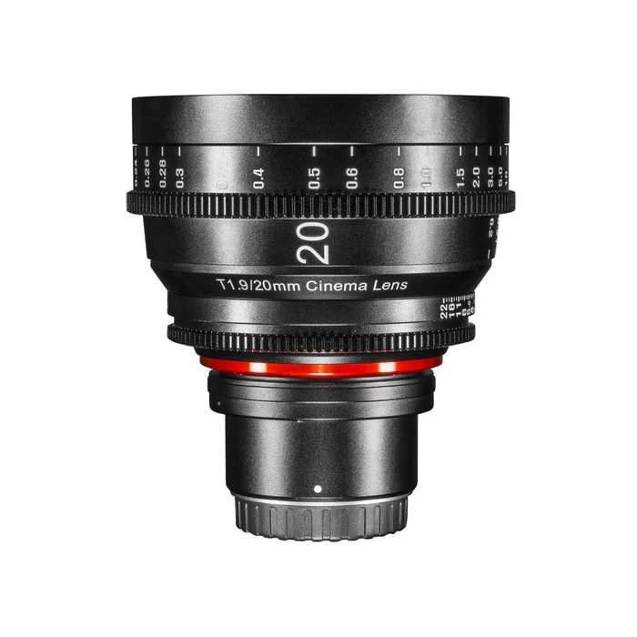 Die Linsen-Konstruktion wurde in einen robusten Tubus aus Aluminium verbaut. Die notwendigen Einstellungen am Follow Focus- oder Blendenring sind stufenlos und lassen sich an alle Follow Focus Systeme mit 0,8 mm Zahnkranz befestigen. Die 7 Blendenlamellen des 20 mm Cinema Objektivs sorgen für ein nahezu kreisrundes und schönes Bokeh.